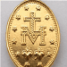 Collection "e breve", Médaille de la Vierge Miraculeuse sur fond mauve, piment rouge, croix. Métal doré.
